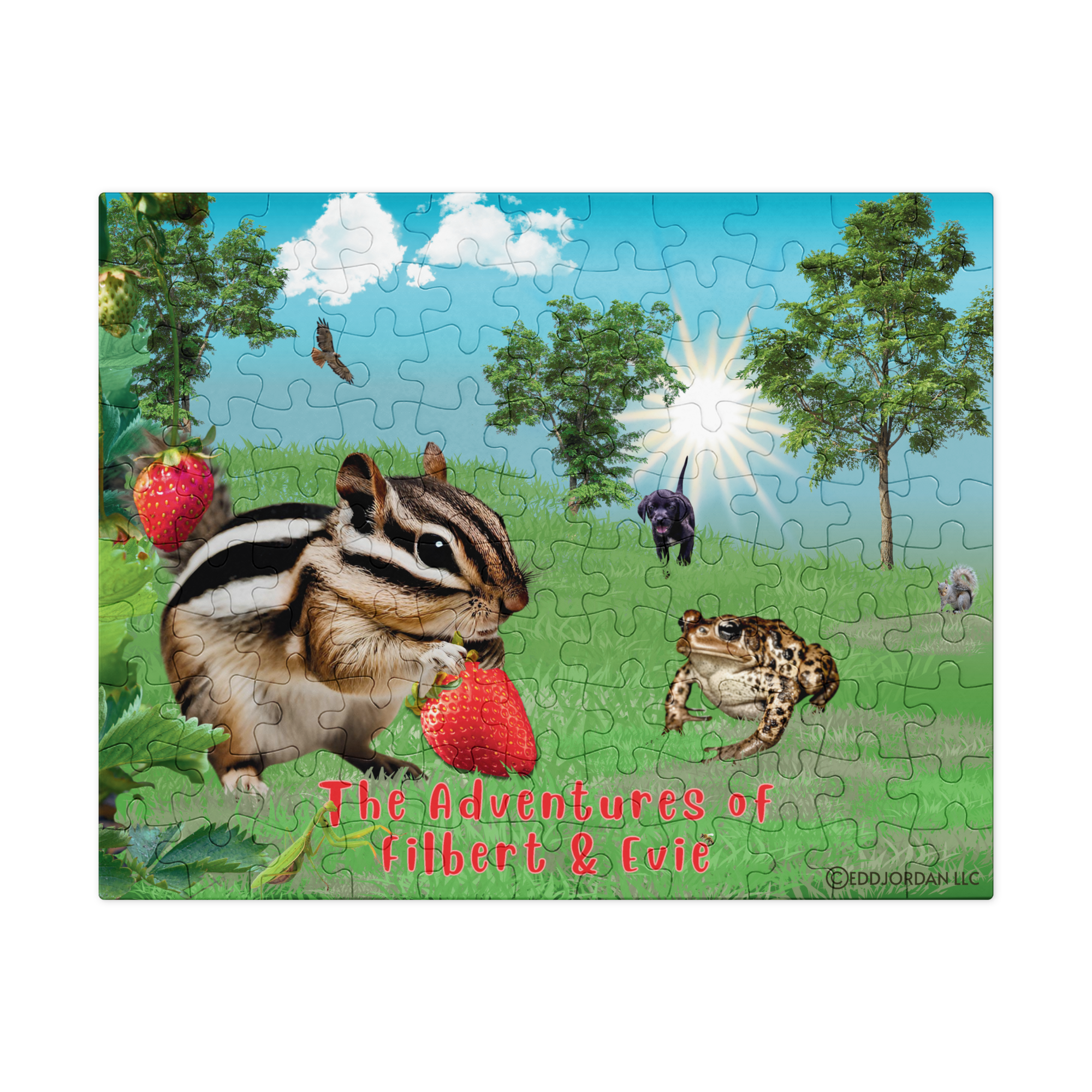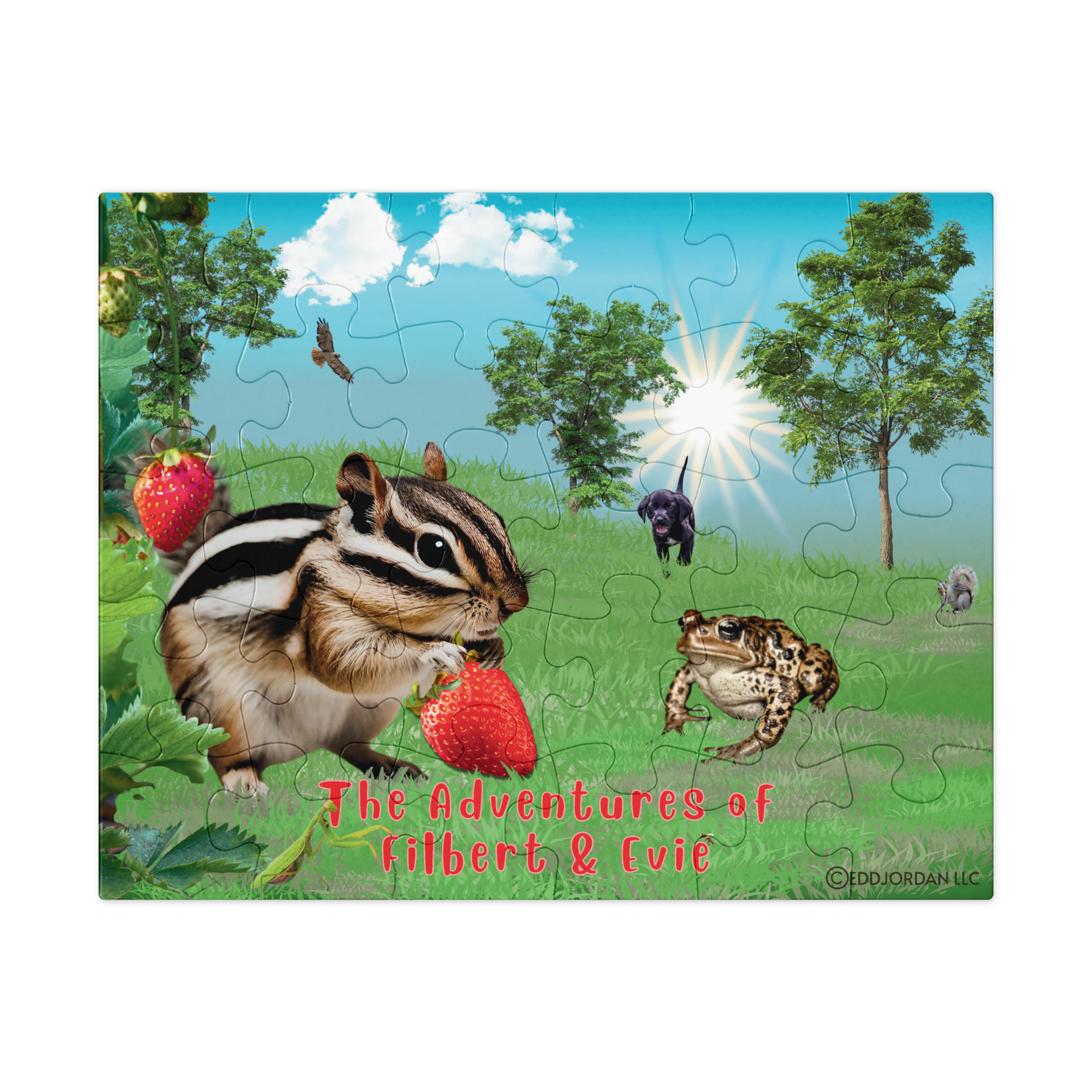 Filbert, Evie, and their delightful companions leap from the pages of the beloved book series into a vibrant, enchanting strawberry-themed puzzle.