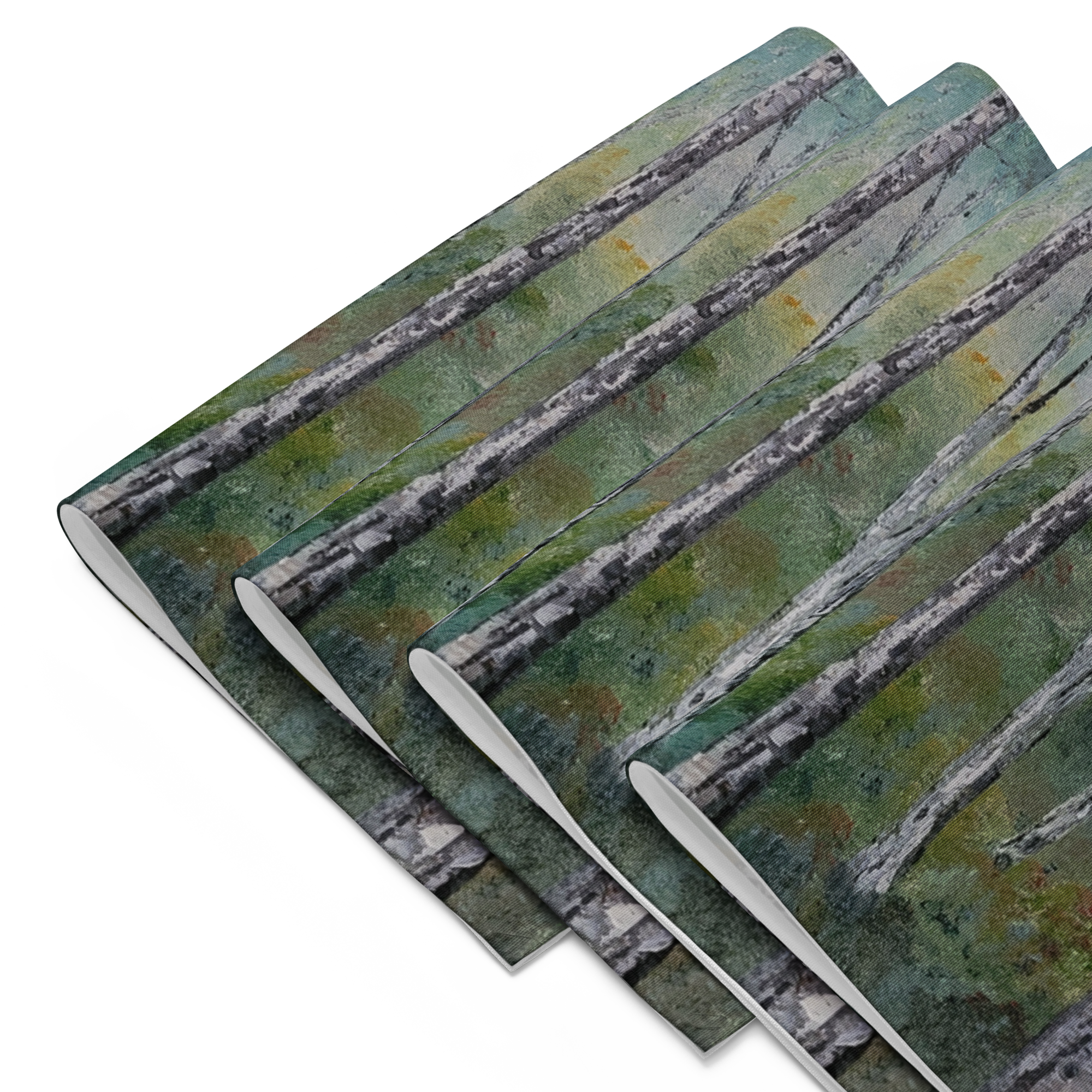 Moody Birch placemats by artist EDD Jordan — a set of four elegant table accents that bring a serene woodland mood to any dining setting. Each placemat features EDD Jordan’s signature birch trees with crisp white trunks that catch the eye and soften the palette. The design balances calm, atmospheric color with clean, natural detail, making these placemats equally suited to casual breakfasts and refined dinner gatherings. Printed on durable, water-resistant material, the set adds understated artistry and lasting functionality to your table. Perfect for nature lovers seeking a modern, muted aesthetic.
