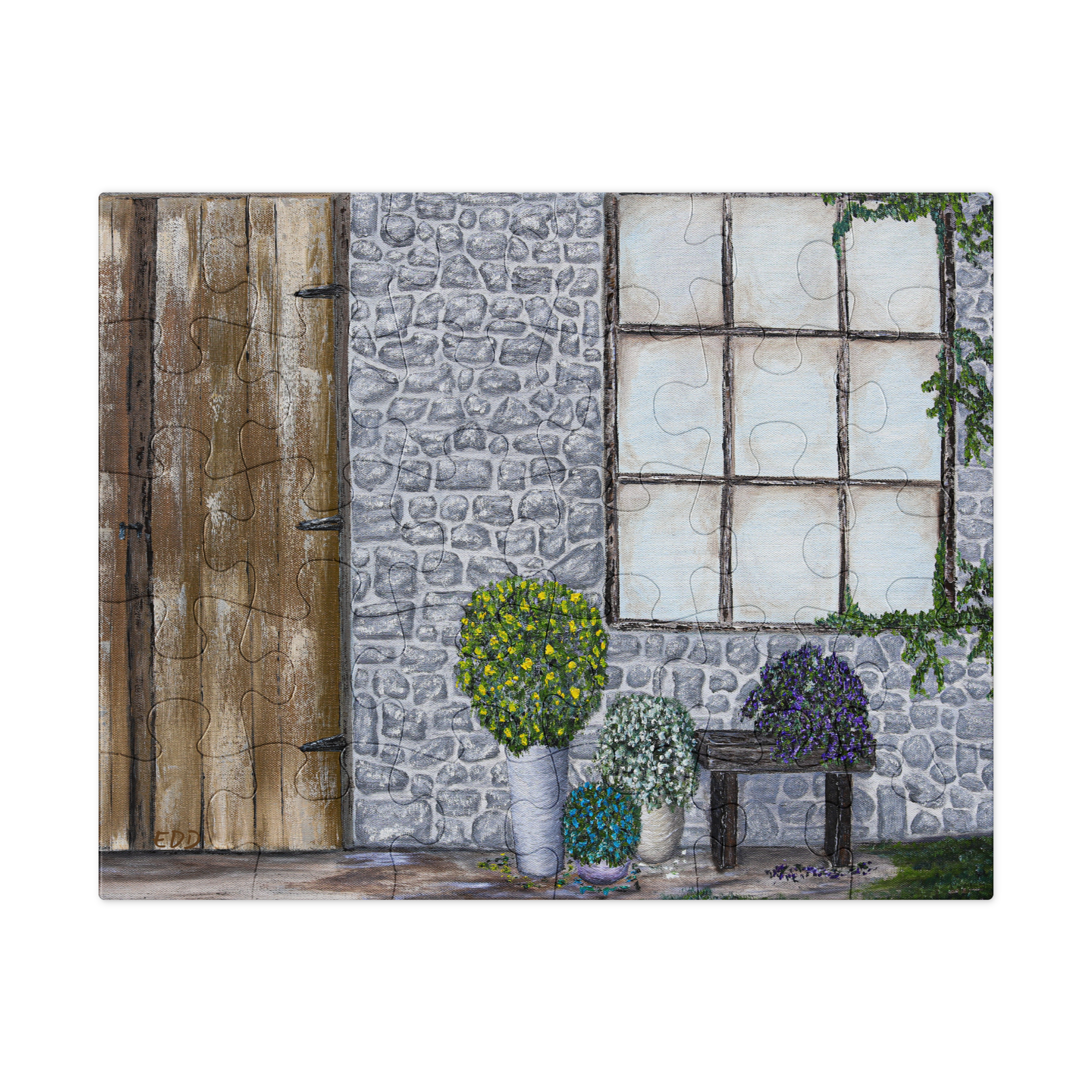 The grey Stone Cottage puzzle evokes a feeling of tranquil relaxation, and as it is assembled, the viewer is transported to a scene filled with the smell of vivid flowers, the touch of vines, and the calmness of the air.